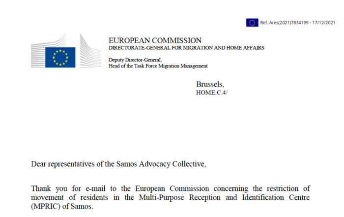 [Press release by Europe Must Act] A correspondence between the Samos Advocacy Collective and the European Commission regarding the current movement restrictions of asylum seekers in the Closed Controlled Access Centre (CCAC) of Samos unveils the inhumanity of the complex asylum system and the worrying lack of accountability from the EU.